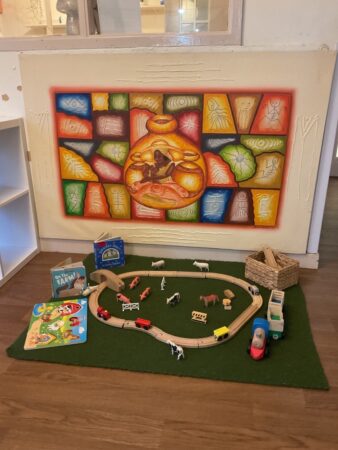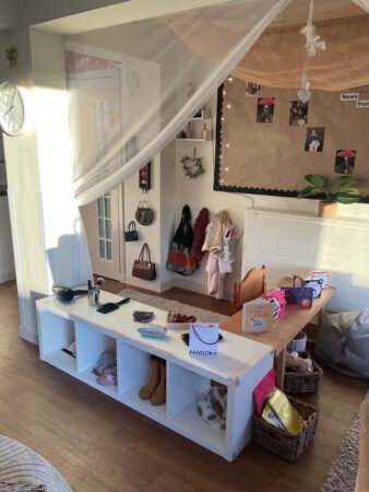 The room is equipped with preloved authentic resources and loose parts. A mix of responsive and intentional planned areas consider the specific needs of children, with a balance of child-initiated, adult initiated and adult-directed experiences supporting children’s interests, curiosity and independence. The layout of the room allows for exploration, cosy areas and messy time and is rich with literacy, numeracy and mathematical experiences.